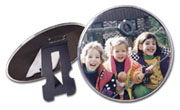 Round Window ButtonMaterial: Celluloid Additional Information: Attachment Options: magnet back, bulldog clip, safety pin, straight pin, magnet clasp (add 2 working days for magnet clasp) |