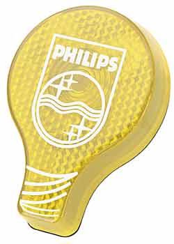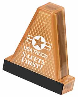 Actual Size: 2-3/8"W x 2-3/8"H Imprint Area: 3/4" Diameter Available Color: Yellow with Red flashing light.