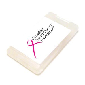 Hand sanitizer spray is about the size of a credit card and makes a great hand out item for breast cancer awareness runs, walks, and other outdoor activities.