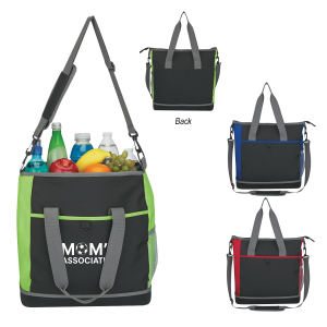 Get a handle on your advertising campaign and add our Hard-Bottom Shopping Kooler Tote to your marketing campaign. With PEVA lining, large front pocket, 23″ handles and color accents available in lime, blue and red. This tote will keep your customer, and your brand looking cool. Great for your company’s summer party, vacation resorts, food and beverage distributors and a wonderful thank you gift anyone will appreciate!