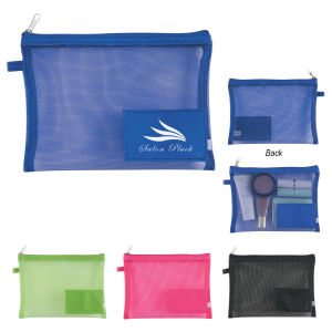 Wherever your go, take this great Sheer Mesh Vanity Bag with! Equipped with a place to pad print a logo, image or slogan on the front, this bag will keep your customers organized while on-the-go. Useful for make-up cases, toiletries or just to keep your sales reps looking fashionable and on brand, these 7 1/4 ” x 5 1/2 ” zip top pouches are sure to be a client favorite.  Great for salons, hotels, travel companies and more!