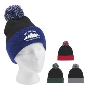You’ll never leave your customers out in the cold with this fashionable and warm Knit Pom Beanie with Cuff. In four colors, with a folded cuff and funky pom detail, all that’s left is to embroider your logo or image in any of our 20+ colors! Great for that company trip out to the ski lodge, giveaways at winter sports shows or for school teams – everyone looks cool while staying warm in this great hat.