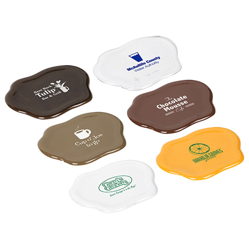 Our Sip N’ Spill Drink Puddle Shaped Coasters are amusing marketing options for your business. These coasters are perfect protectors for desktops, office space counter tops, lunch tables, boardroom tables, and restaurant booths. Choose from a variety of color options including orange juice, coffee cappuccino, cola, white milk, chocolate milk, and clear water.