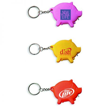 Our Mini Key Chain Piggy Measuring Tapes come in seven bright colors to match excellent your brand image. Each pocket-sized pig can be printed with a full-color or single color logo of your choosing. These pig shape tape measure tools are perfect for BBQ contests, pork lovers, and pitmasters alike. They look like miniature piggy bank keychains and would be great kid giveaways for banks to encourage youngsters to open savings accounts. Barbecue restaurants and home improvement stores are also likely orderers of this pint-sized porkers.