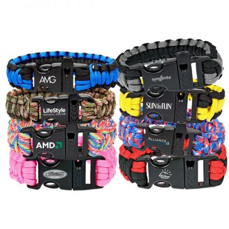 In extreme first aid situations, compression and blood flow stoppage is of utter importance. We offer multiple styles of Branded Emergency Medical Kits with Tourniquet Bands and also a large selection of Paracord Bracelets that can be used to stop bleeding in survival scenarios. Our tourniquet kits come in a variety of prices points, and our survival bracelets come in countless colors, just ask. Military members and first responders are just two groups of people that rely on tourniquet kits to save lives. These are great for sporting goods stores and camping outfitters, as well as hunting guides and survivalist trainers.