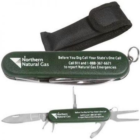 Our Golf Multi Tool Accessories feature a standard pocket knife, a bottle opener, a screwdriver, a keyring attachment, a divot remover tool, and a club head groove cleaner. Whether users are cracking open a cold one on the course or need to make a quick equipment fix mid round, these are fantastic gadgets to have on their belt, in their golf bag, or on their golf cart key chain. We recommend these handy Swiss Army Knife-like contraptions for charity golf tournaments, club house promotions, and golf car dealerships.