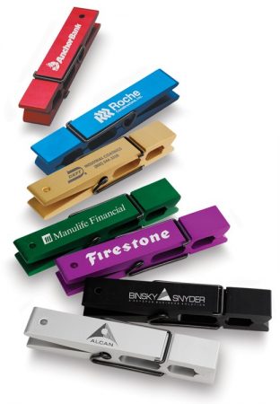 Our Giant Clothespin Promo Products work well as awards, desk toppers, paperweights, and team building tools. Sizes and material types differ for these epic options, yet all of the below clothes clip shaped items can be custom imprinted with a logo or design.