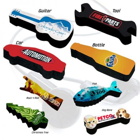 These Earbud Winding Accessories keep users organized while promoting your business. See the below picture for our large variety of stock shapes, or contact our team if you are interested in custom shapes. Unique shapes we offer include guitars, wrenches, cars, beverage bottles, fish, dog bones, Christmas pine trees, and more! We also have a few standard shapes like rectangles and ovals that offer an even larger imprint area. Our earphone winders prevent unwieldy cord tangles and act as great marketing products for concerts, trade shows, and retail stores.