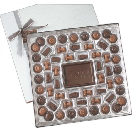 1.5 lbs Chocolate Gift Box with Stock Molded Chocolates and a Larger Center Piece that can be a custom piece