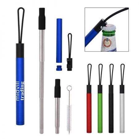 The Mateo Straw Kit with Bottle Opener is the perfect tool for a sunny summer day at the beach. With a straw and a bottle opener you can crack open a cold one, sit back, sip and relax!