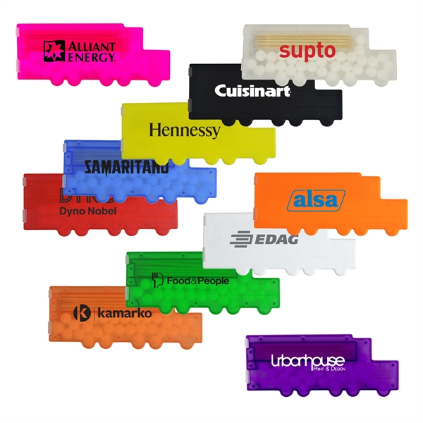 Similarly, the Delivery Truck Mints container offers a unique and creative way to deliver your brand message. Ideal for businesses that specialize in deliveries or transportation services, this container is shaped like a delivery truck and holds the same combination of mints and toothpicks. Like the other options, it’s made from 30% recycled plastic, offering a sustainable promotional product that aligns with eco-friendly practices. The container is customizable with various color options and imprint methods, ensuring that your logo or message stands out and helps build brand recognition at trade shows or corporate events.