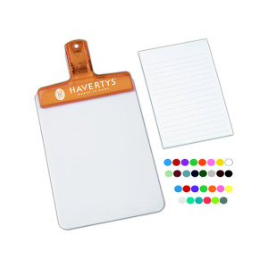 With this handy Keepit (TM) Clipboard Notepad your company name and logo are sure to stand out as clients take notes or memos! This sturdy clip is available in a variety of translucent colors and can be custom imprinted with your company, school, or office logo. It holds a prescription pad or notepad sized 8″ x 4 1/4″ (not included). A great hand-out item for conferences where lots of notes will be taken – help the attendees keep all their handouts in one place!