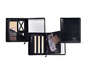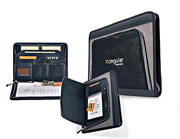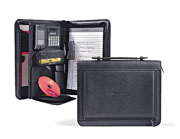 * Patented Quadrafold™ organizer in a feature-packed padfolio