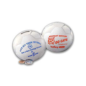 White Miniature Soccer Ball Shape Bank With Removable Plug On Base.
