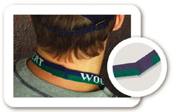 woven design on 1-color webbing (1- or 2-sided if available). |